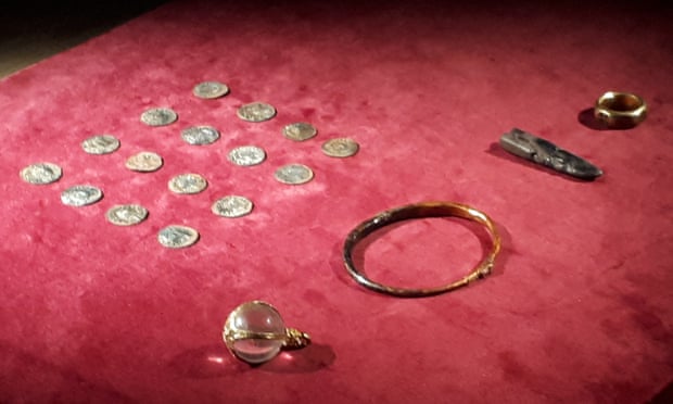 Coins and jewellery from the hoard found by George Powell and Layton Davies. Photograph: .