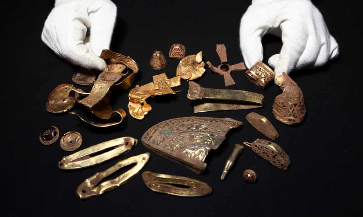 Items from the Staffordshire hoard of gold, weapons and ornaments found by a metal detectorist in 2009. Photograph: David Jones/PA