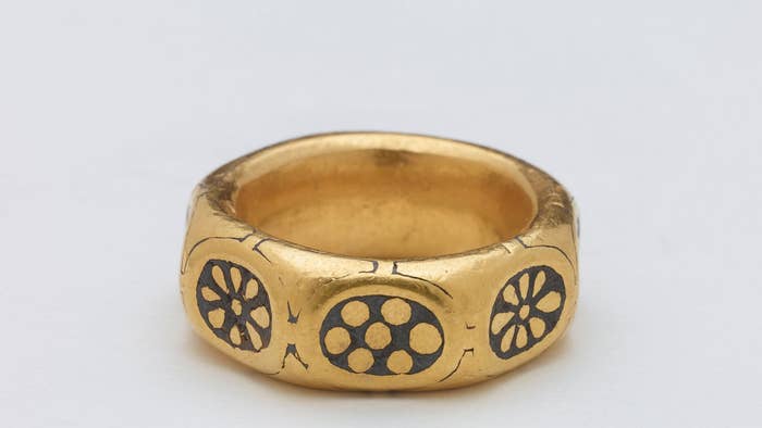 Among the jewellery, which dated from the fifth to ninth centuries, was a ring, an arm bracelet and a small crystal ball held by strips of gold that would have been worn as a pendant.